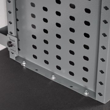 Vnitřní háčky, které se upevňují na boční panely polic, jsou ideální pro zavěšení kabátů, pracovního oděvu nebo ochranného vybavení, když se nepoužívají.