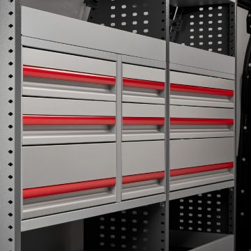 Naše zamykatelné zásuvky nabízejí různé možnosti a konfigurace a kombinují elegantní hliníková čela s robustními madly přes celou šířku, což zajišťuje snadný přístup i maximální odolnost.