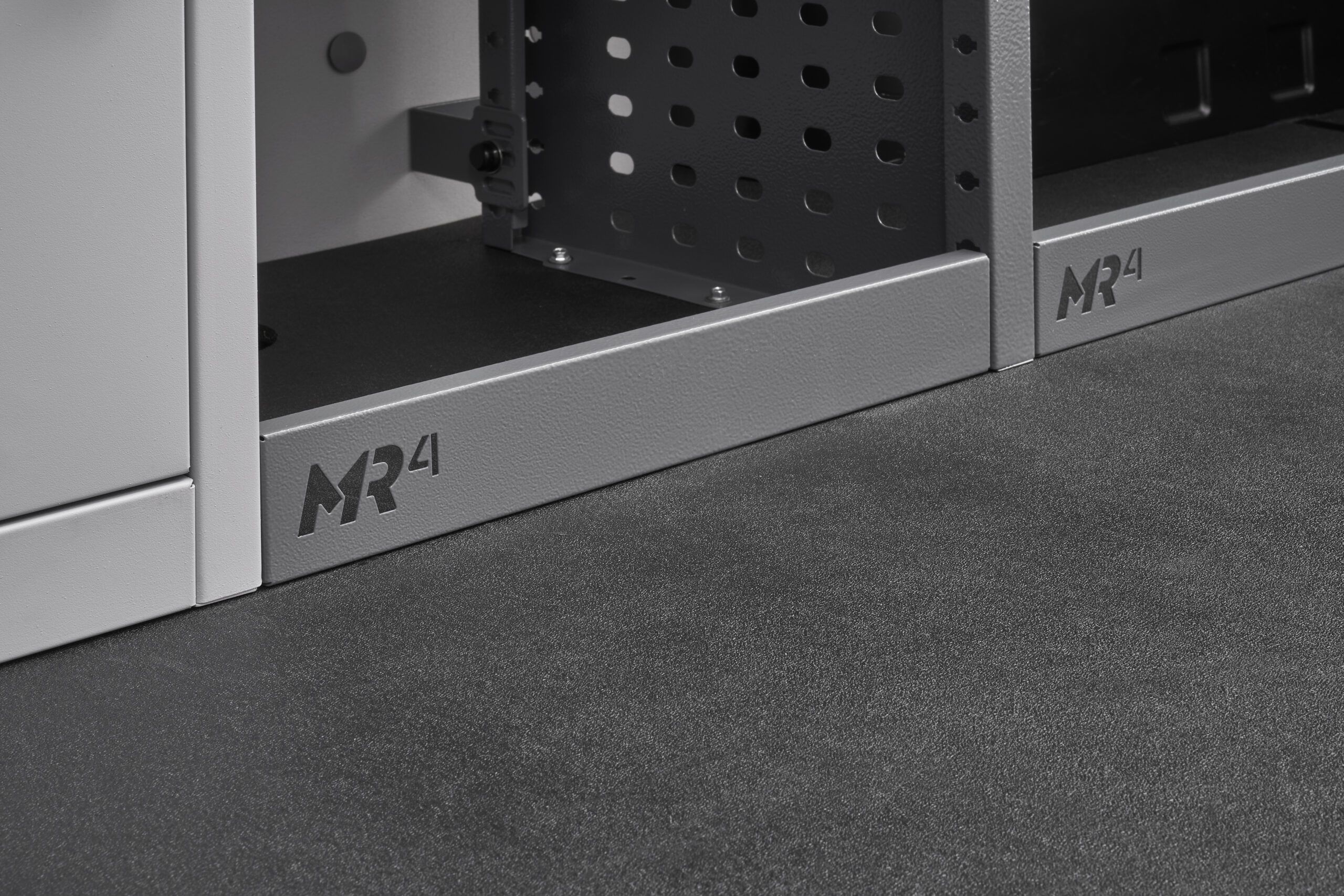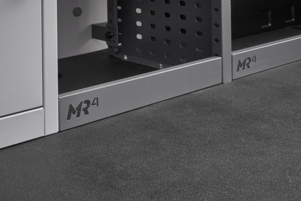 Nosné části a police jsou vyrobeny z vysoce pevnostní oceli s práškovým lakováním, která spojuje nízkou hmotnost a vysokou pevnost. Každý systém MR4 byl pečlivě testován z hlediska bezpečnosti a odolnosti.