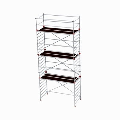 JUMBO Double Towers představují profesionální hliníkové lešení určené pro použití s vysokými nároky na kvalitu a flexibilitu. Tato sada je konfigurována pro podlážky o délce 2 m nebo 4 m, což umožňuje nastavení výšky podlážek dle konkrétních potřeb.