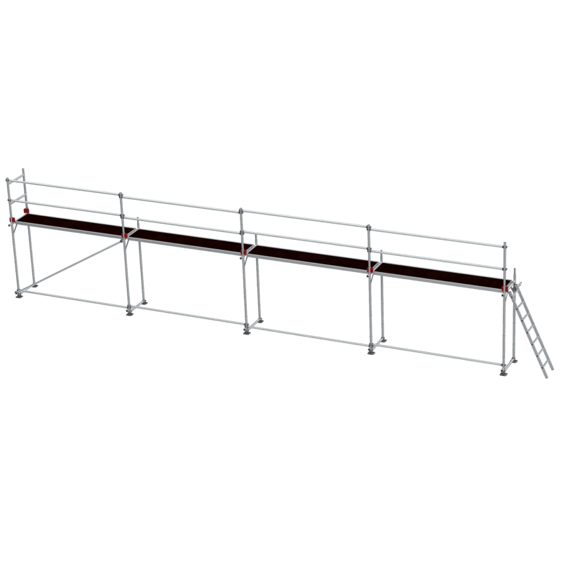 - Pracovní plocha: Lešení je dodáváno s podlážkami JUMBO, které kombinují hliník a vodovzdornou překližku, což zajišťuje bezpečnou a stabilní pracovní plošinu za všech pracovních podmínek.