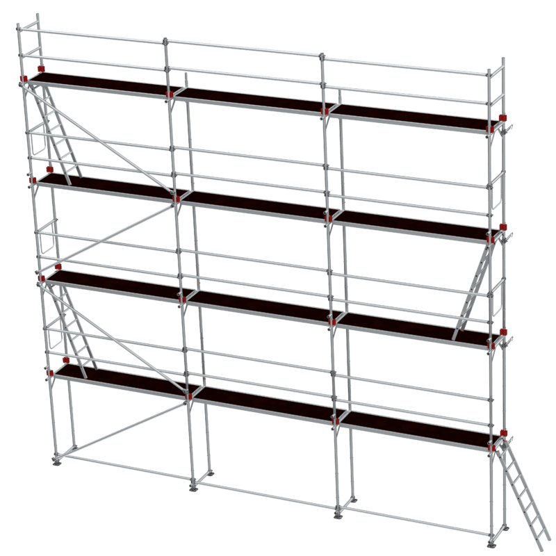 - Flexibilita: Systém je mimořádně flexibilní a nabízí mnoho možností přizpůsobení, což usnadňuje úpravu lešení podle různých potřeb na staveništi.