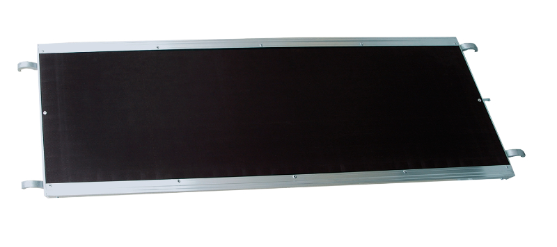 Podlážka JUMBO bez průlezu je vyrobena z voděodolné, protiskluzové finské překližky z čisté břízy, osazené v robustních hliníkových bočnicích. Přesazené háky podlážky umožňují prodloužení lešení bez vyosení a patentovaná pojistka proti větru na spodní straně zajišťuje podlážku ke všem typům lešení.