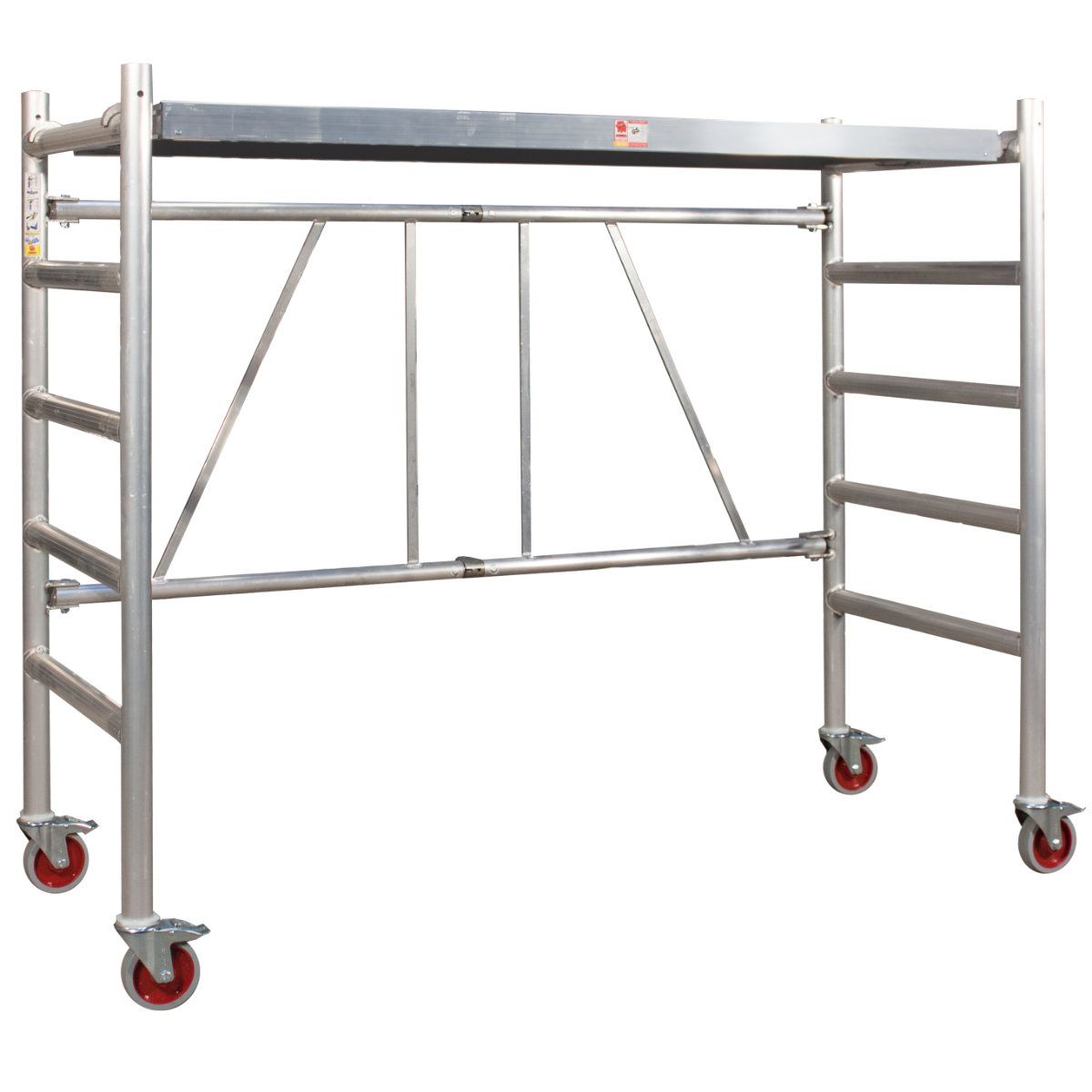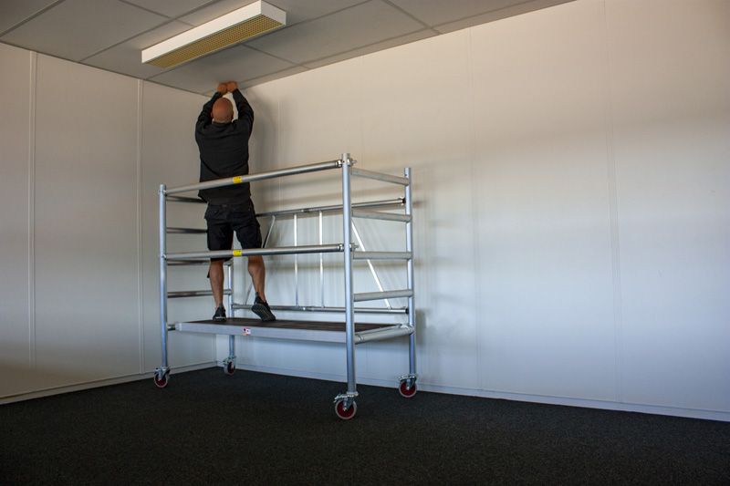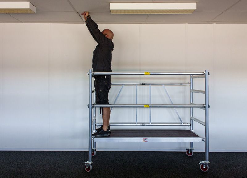 Lešení má plně svařované rámy a plošinu s protiskluzovou a voděodolnou překližkou, která zajišťuje stabilitu a bezpečnost při práci. Jeho sestavení a demontáž je rychlá a snadná, takže je ideální pro menší projekty nebo místa s omezeným prostorem.